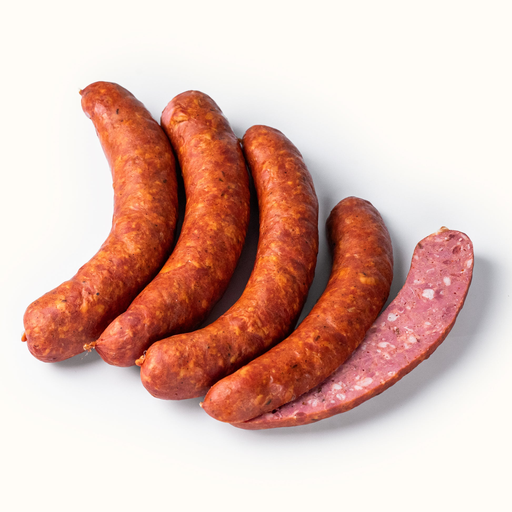 Naše Dubňanská klobása nese jméno po místě, kde všechno začíná - v malebné obci Horní Dubňany. Čistě hovězí klobása, vyrobená z masa z vlastního chovu, bez kompromisů, pouze s pečlivě vybraným kořením. Dubňanská je poctivá, masitá a skvěle se hodí jak na gril, tak jen tak na prkénko s kouskem chleba a hořčicí. Tradiční receptura, regionální původ a nezapomenutelná chuť - to je naše klobása, za kterou si stojíme.
