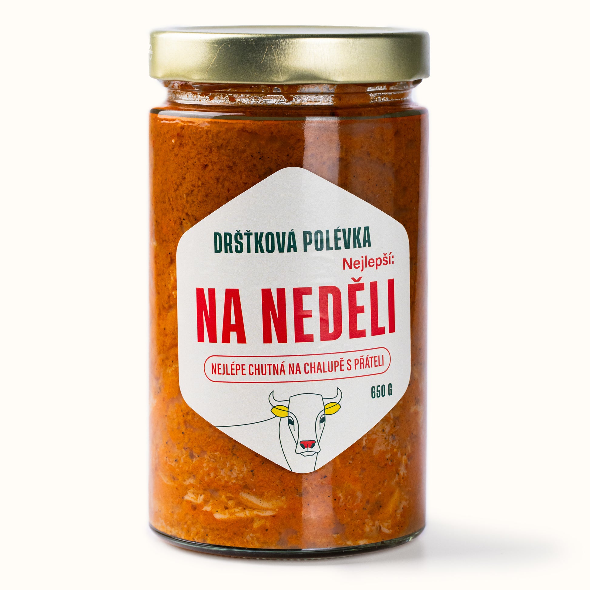Hotová dršťková polévka se hodí nejen na chalupu, ale především ve dnech, kdy nemáte tolik času v kuchyni. Receptura na naši dršťkovou polévku vznikla na přání našeho šéfa, který měl hned od vzniků BÝKÁRNY jasno, že tento produkt nesmí chybět v naší nabídce. Musíme mu dát za pravdu, že je tato hotovka velmi oblíbená. Když ochutnával finální recepturu, řekl našim klukům řezníkům: "Borci, musím vám smeknout pochvalu. Měl jsem hodně dršťkovek, ale téhle se nedá konkurovat."